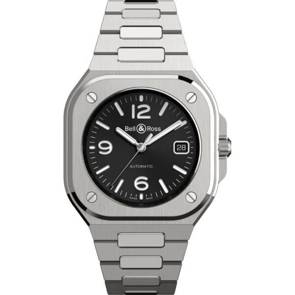 Bell & Ross BR 05 Black Steel BR05A-BL-ST/SST pairs a stainless-steel case with a black sunray dial, Super-LumiNova clarity, and integrated bracelet, delivering modern precision and confident everyday versatility with urban tool-watch character.