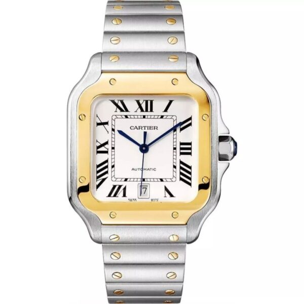 The Cartier Santos de Cartier W2SA0009 blends timeless elegance with modern luxury. Featuring a 39.8mm stainless steel case, 18k yellow gold bezel, and signature Roman numeral dial, it embodies Cartier’s rich heritage. The two-tone bracelet and automatic 1847 MC movement elevate its sophistication, while the faceted spinel crown adds a refined touch. A true icon, it’s a bold yet graceful expression of exclusivity and enduring style.