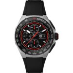 The TAG Heuer Formula 1 Chronograph CBZ2082.FT8096 boasts a bold black and red design, housed in a lightweight 44mm titanium case for maximum durability and comfort. Built for high performance, it features a precision chronograph and tachymeter scale—ideal for measuring speed. Paired with a rugged rubber strap, this dynamic timepiece combines sporty aesthetics with racing-inspired functionality, perfect for those who demand both adrenaline-fueled style and professional-grade performance.